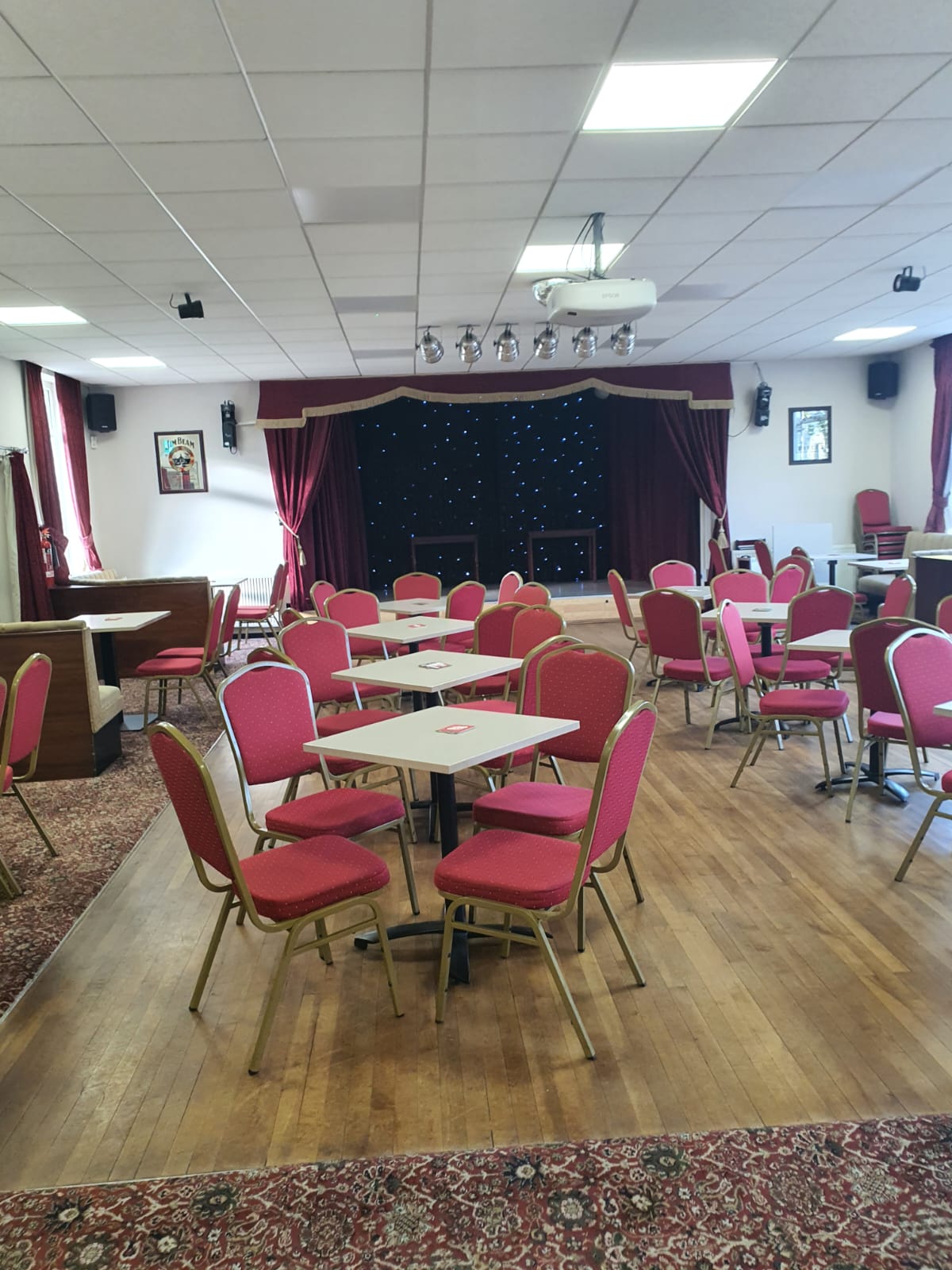 Our function room is available for hire, featuring plenty of seating, a cinema size projector screen, and a licensed bar. It’s perfect for christenings, wedding parties, and any other special events.