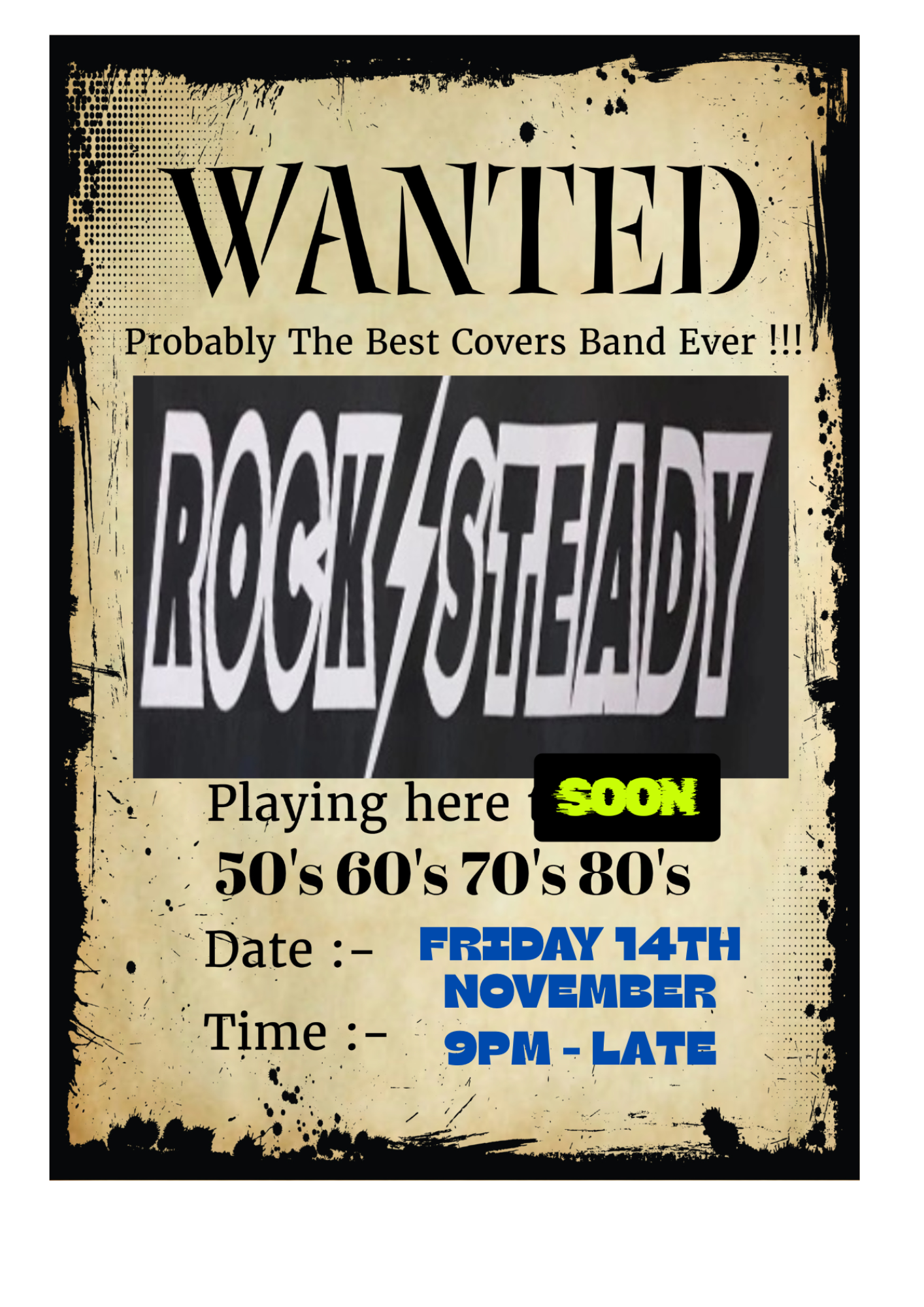 November 14th ROCK STEADY live band + Add to Google Calendar + iCal / Outlook export The event is finished. Date Nov 14 2025 Expired! Time 20:00 - 23:55 Share this event