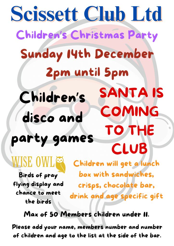 This years children’s Christmas party is Sunday 14th December 2pm – 5pm.