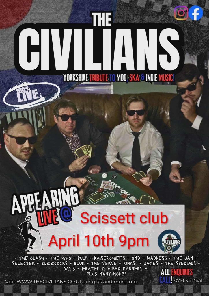 April 10th. Civilian live band. SKS, MOD & INDIE